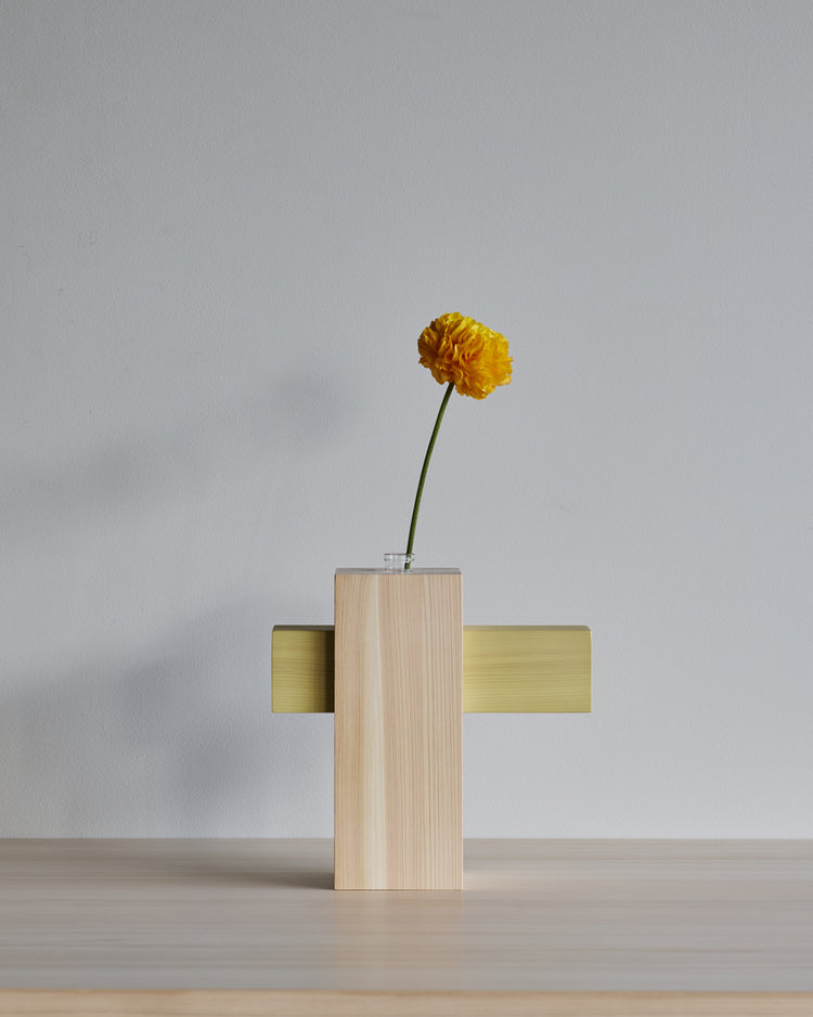 「組器」という名前は、シンプルな形が組み合わさった木のおもちゃの「組木」のような一輪挿しの姿から名づけられました。シンプルながらも、どんな空間にも合うように、ボリュームとディテールに拘りが込められています。